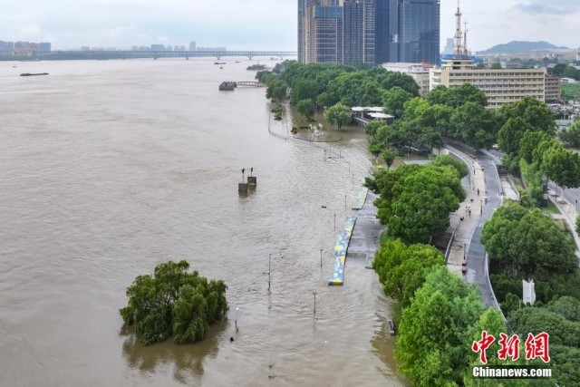 7月1日,江苏南京,长江南岸江豚观赏地平台被水淹没。当日,江苏省水利厅发布长江江苏段洪水黄色预警,受强降雨及长江中上游来水影响,预计长江江苏段水位将继续上涨。