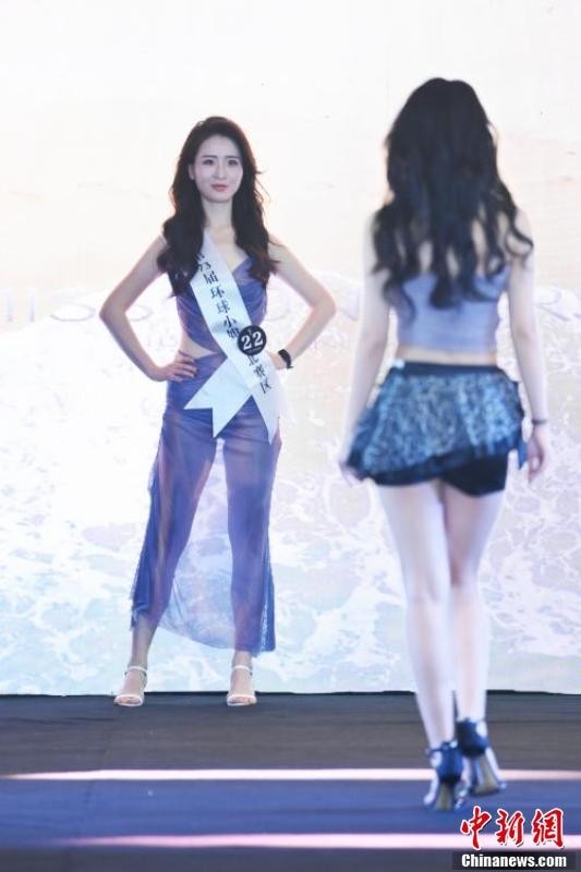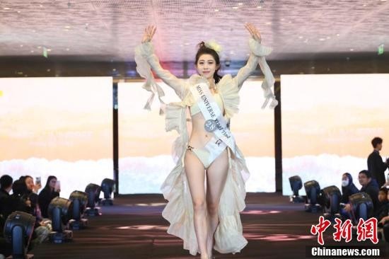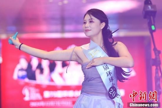 12月7日晚,环球小姐中国区西北赛区总决赛在甘肃兰州举行,来自陕西、甘肃、青海、宁夏等中国西北省份的选手参加了比赛,赛程包括泳装走秀、华服展示、才艺秀等环节。图为选手进行比赛。