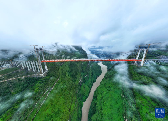 天门特大桥是安顺至盘州高速公路的重要控制性工程,大桥全长1553米,桥面距离峡谷水面约560米。