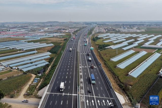 这是9月22日拍摄的京哈高速改扩建项目(无人机照片)。
