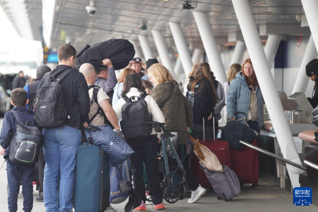 11月5日,在美国纽约肯尼迪国际机场,乘客排队值机。