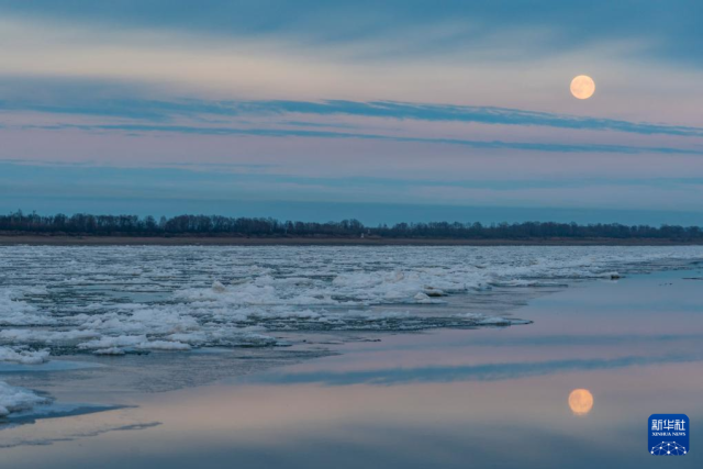11月5日在黑龙江嘉荫段拍摄的“超级月亮”(无人机照片)。
