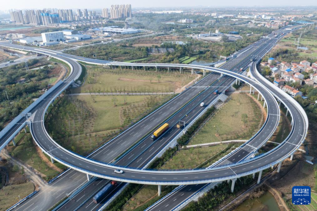 这是11月20日拍摄的京港澳高速公路改扩建孝感东互通枢纽(无人机照片)。