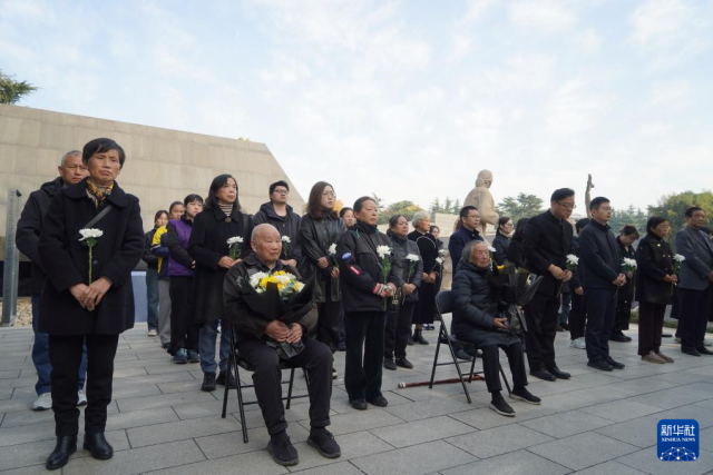 11月30日,南京大屠杀死难者家庭祭告活动在侵华日军南京大屠杀遇难同胞纪念馆遇难者名单墙前举行,南京大屠杀幸存者刘民生、夏淑琴参加家祭活动。