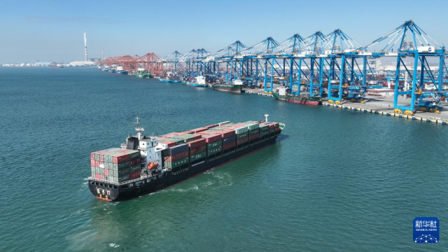 11月29日,一艘海轮驶向钦州港码头(无人机照片)。