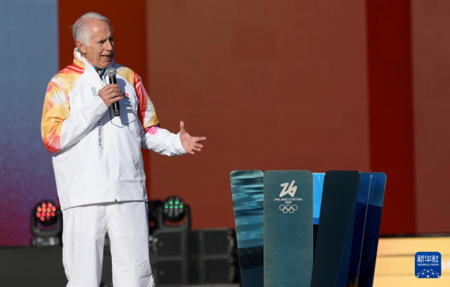 12月6日,米兰冬奥会组委会主席乔瓦尼·马拉戈在火炬传递前致辞。