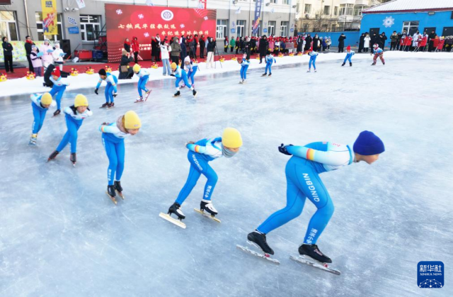 近日,随着气温的下降,黑龙江省多地中小学校在校园内浇筑冰场,举行各类冰雪活动,让学生在校园内尽情享受冰雪运动的快乐。