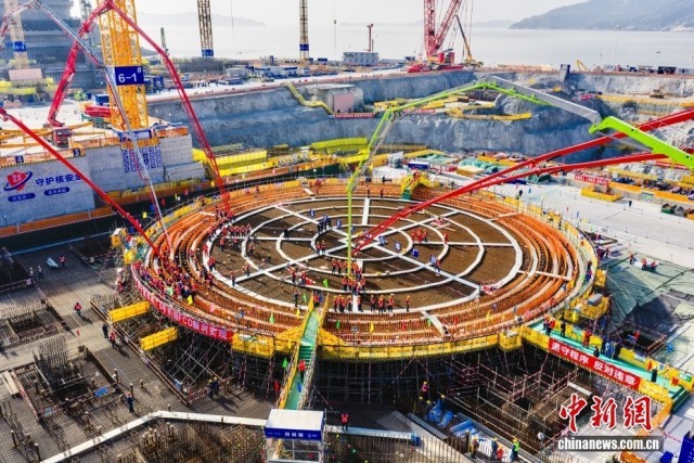 12月16日,中广核福建宁德核电站6号机组完成核岛第一罐混凝土浇筑(FCD),标志着该机组主体工程正式开工。宁德核电项目位于福建省福鼎市太姥山镇,规划建设6台百万千瓦级核电机组,分两期实施,是福建省首个开工及投产的核电站。其中,项目二期5、6号机组于2023年7月31日获国家核准,均采用中国自主三代核电技术“华龙一号”。(无人机照片)