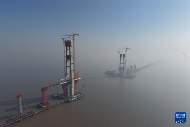 1月16日,在浙江杭州湾海盐侧离岸约0.4公里的海面上,由上海国铁建管公司建设管理、中铁大桥局承建的北航道桥高达200米的8号主塔成功封顶。这是大桥全线三座航道桥、七座主塔中首座封顶的主塔,标志着这一超级工程建设取得重大阶段性进展。