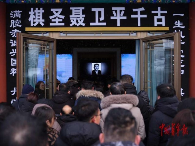 1月18日上午,聂卫平遗体送别仪式在北京市八宝山殡仪馆东礼堂举行。早上7时许,天空中飘着雪,送别的人群在礼堂外排起长队。华以刚、刘小光、曹大元、常昊、古力等几代中国棋手及韩国棋手曹薰铉、日本棋手武宫正树也到现场送别。 聂卫平于2026年1月14日逝世,享年74岁。作为中国围棋的标志性人物,他曾在1984至1988年间率领中国队在中日围棋擂台赛中豪取11连胜,被授予“棋圣”称号。中青报·中青网记者 李隽辉/摄