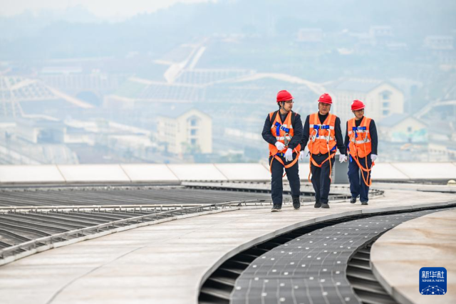 每次作业,他们都需背负工具,沿坡度近80度的爬梯攀至百米高的站房屋顶,在检修步道和马道上穿行,通过连续3至4天的接力作业完成全部检查,排除隐患,确保枢纽“筋骨”强健、运行无虞。