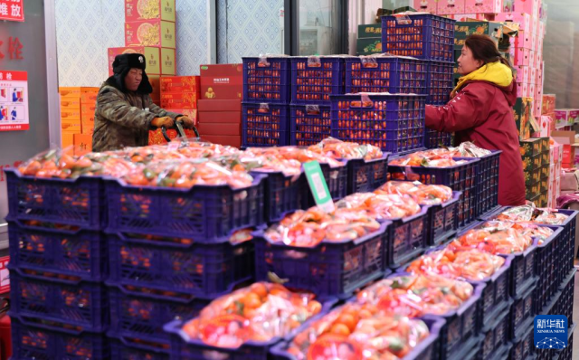 春节将至,位于辽宁省盘锦市的东北新发地农产品供应链中心蔬果吞吐量迎来高峰,来自南方的蔬菜水果在这里进入东北地区市场,东北地区的特产从这里发往全国各地,南北年货的相遇让春节的年味更加浓郁。