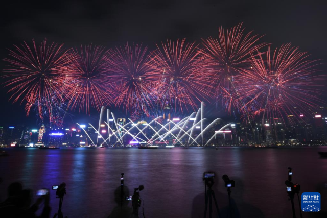 2月18日,香港举办农历新年烟花汇演,欢庆新春佳节。