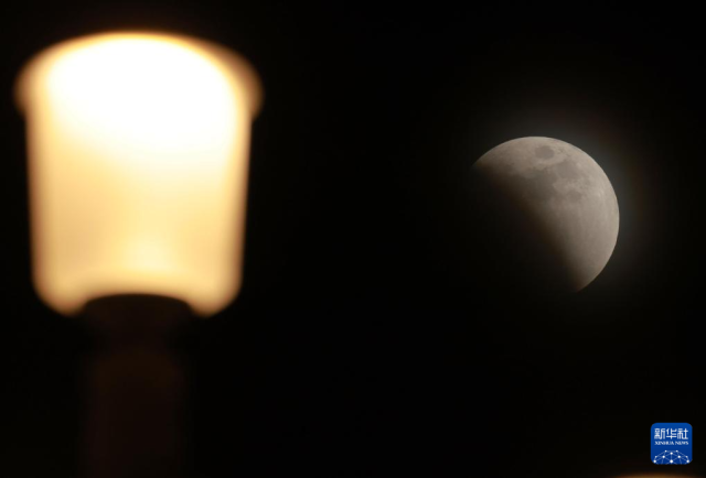 3月3日在黑龙江省抚远市拍摄的月全食初亏阶段。