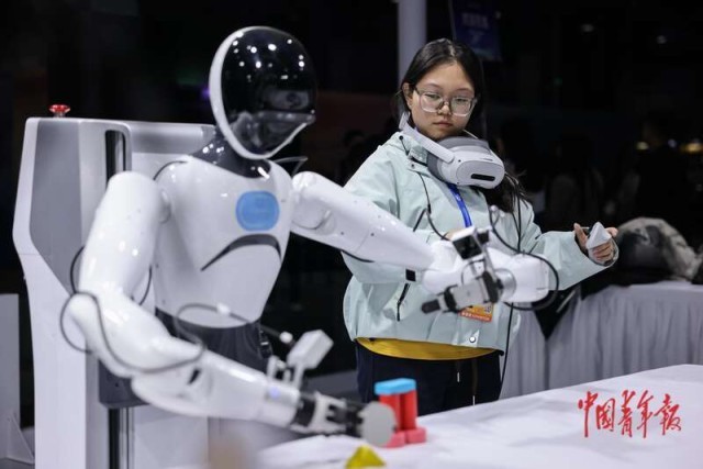 3月26日,北京首钢园,2026中国科幻大会媒体探馆日,石景山具身智能综合实训场展位上,工作人员通过同步动作控制机器人完成搭积木任务。3月27日至29日,2026中国科幻大会将在北京首钢园举办,今年适逢大会创办十周年,将围绕“忆十载·聚共识·兴产业·向未来”四大板块,通过开幕式、论坛会议、产业促进等一系列专项活动,推动科技创新和产业创新深度融合,引导科技界、产业界和公众共同参与科幻生态建设,感受科幻魅力与产业活力,为科技强国建设凝聚广泛的民意基础。中青报·中青网记者 曲俊燕/摄
