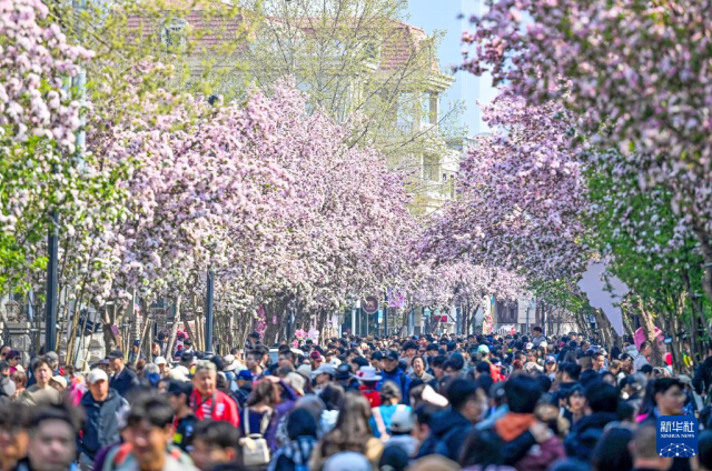 近日,天津市五大道历史文化街区大理道的海棠花竞相绽放,吸引众多游客前来赏花游览。为进一步激活“春日经济”,天津市和平区于4月3日至12日举办2026年五大道海棠花节,为市民游客奉上一场春日文旅盛宴。
