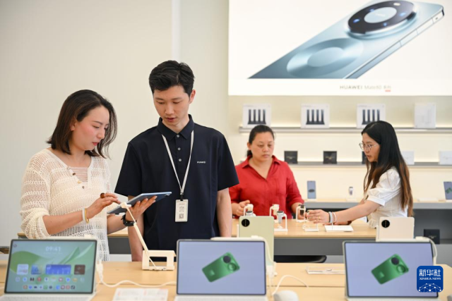 4月10日,消费者在贵州省贵阳市开阳县一家数码产品专卖店内选购数码产品。