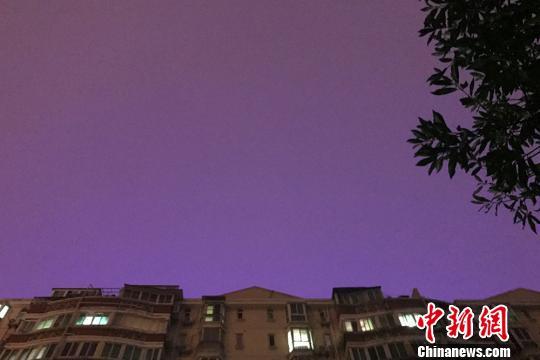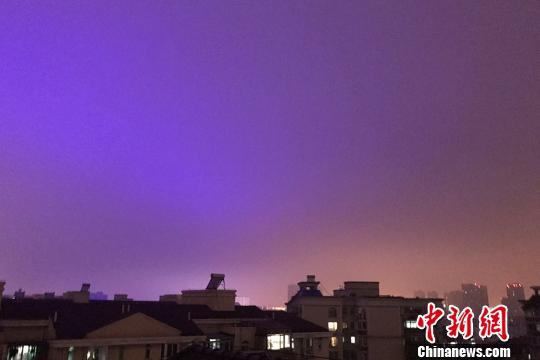 9月30日晚7点30分左右,南京城上空突然发紫,瞬间将天空映衬得格外神秘。