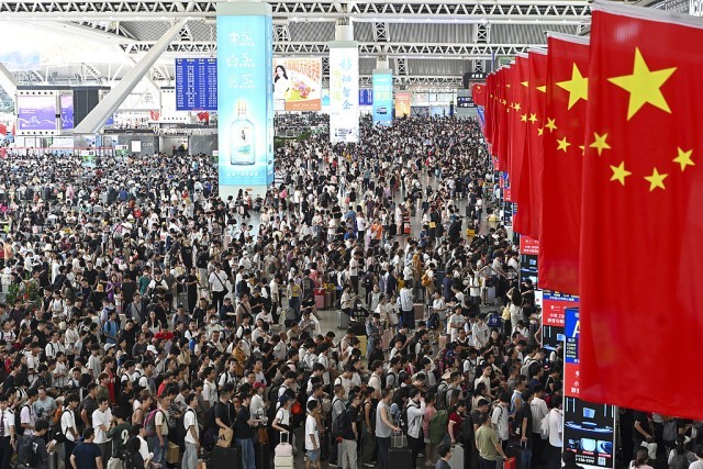 10月1日,旅客在广州南站出行。今年铁路国庆中秋假期运输自9月29日至10月10日,为期12天。视觉中国供图