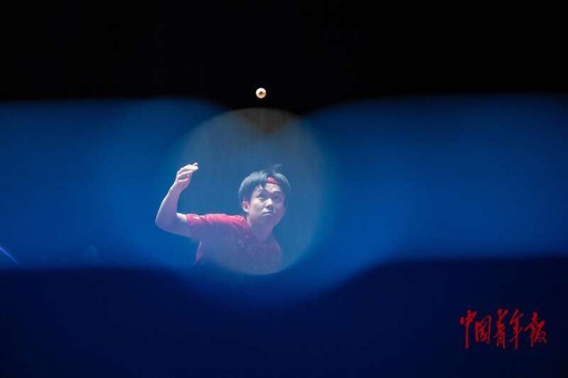 11月15日,澳门,第十五届全运会乒乓球男子团体赛,北京队王楚钦在比赛中。当日的乒乓球比赛中群星闪耀,多位世界冠军同场竞技。中青报·中青网记者 李隽辉/摄