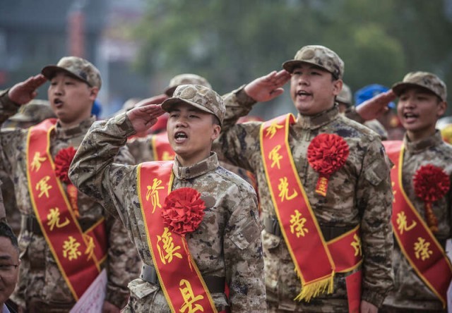 3月16日,江西省抚州市资溪县,欢送入伍新兵现场,新兵向亲人告别。视觉中国供图