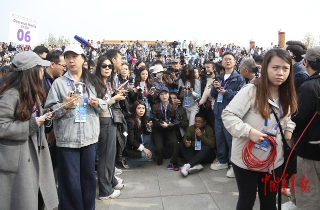 4月19日,北京经济技术开发区,2026北京亦庄半程马拉松暨人形机器人半程马拉松举行,中外记者在采访区等待。据了解,有近千名来自国内外机构的媒体记者、自媒体博主报名参与此次赛事报道。中青报·中青网记者 赵迪/摄